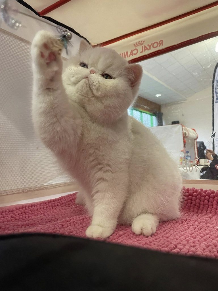 Femelle Exotic Shorthair blanche aux yeux impairs